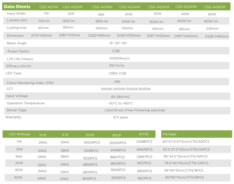 LED anti-glare downlight Power: 7W 12W 18W 24W 30W 40W 60W LED: CREE COB Power supply: Top brand driver with flickering free Warranty: 5 years